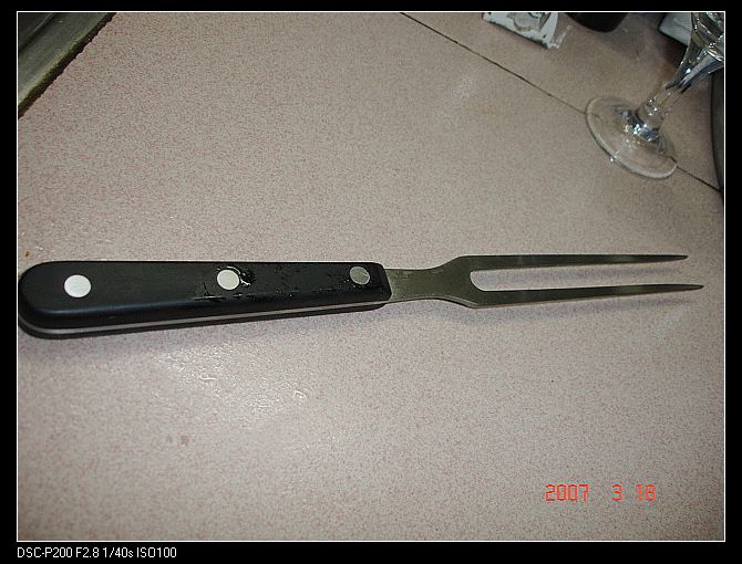呵..这是切肉的专用工具...说起来惭愧,这是我生平第一次切肉,我好害怕切到手,以前做的菜,其实都是不需要出动到大刀,水果刀就能解决的菜式,今天一试,好像切肉也不太难....