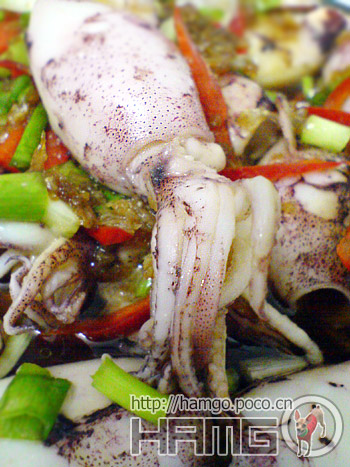 原料:小鱿鱼、蒜头、红椒、葱、酱油少许、油做法:先把锅烧干了,然后放入油(油多一点儿好焖!!)和蒜头、红椒丝(多一些不要紧),等油把蒜头榨得稍微小黄,就可以把小鱿鱼放进锅里面,注意:如果鱿鱼的水末有沥干些,放进锅里面会溅哦。。小心你的手哇!!然后盖上锅盖(如果是透明的盖子就更好啦!看得到),等小管变粉红了就可以拿开盖用铲子拨几下啦。。这时候就可以下酱油(表太多喽)啦 !!!然后味道尝下,撒上葱花,再盖上会儿,差不多就OK啦!!页码:[1] [2] [3] 第1页、共3页