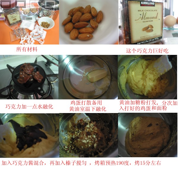本来应该做的味道还算可以,因为第一次做嘛,和出来的面粘手,我以为太稀了,又加了点面粉进去,出来的结果就是像面包的饼干.. 虽然没有饼干的效果,那偶就给它们画点小妆,娱乐一下自己. 材料:低粉100g,鸡蛋2个,巧克力5块(变巧克力酱),黄油30g,糖粉100g ,榛子适量吧