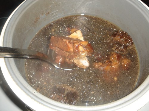 豆瓣酱土豆鸡(主材料:鸡、土豆--红通通的一道菜,热力十足) 彩椒炒蟹柳(主材料:菜椒、蟹柳--忘记拍照了……) 芒果o者哩(主材料:鲜芒果、o者哩粉) ![]() 灵芝罗汉果汤,拍得星光闪闪