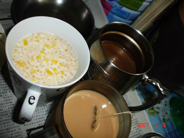 我泡了一杯麦片,先生的咖啡,我的奶茶~~