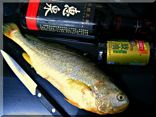 偶买的黄鱼出场啦!菜场买的黄鱼16元/条(忘了多少钱一斤),黄酒单位过年发的,不要钱嘀!豉油是在天润发超市买生抽送的,忘了多少钱.