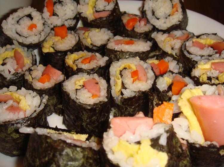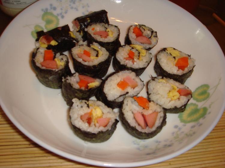 做到一半,拍拍成果,可惜没有黄瓜,缺了点绿色