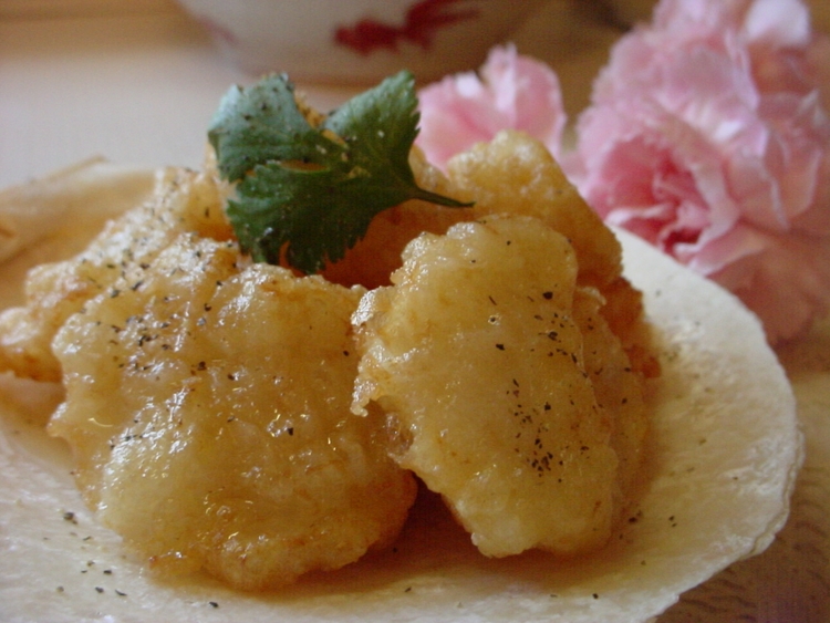 脆皮瑶柱做法:鲜瑶柱洗净,太厚的改刀成片型,用适当盐/白胡椒粉/蛋白/酒/淀粉水上味,抓糊,用温开油炸成金黄脆皮.