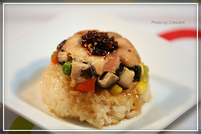 做法: 1、糯米浸泡3-4个小时,用电饭锅煮到水分干。 2、鸡腿肉切丁,用常规调料(有什么,想吃什么就随便来吧)腌30分钟。 3、取一只碗。鸡肉垫底,加香菇,玉米粒,豌豆,胡萝卜丁,盐。盖上煮好的糯米,压实。4、蒸锅水开后放入,蒸到鸡肉熟透。再加些喜欢的调味料在饭上即