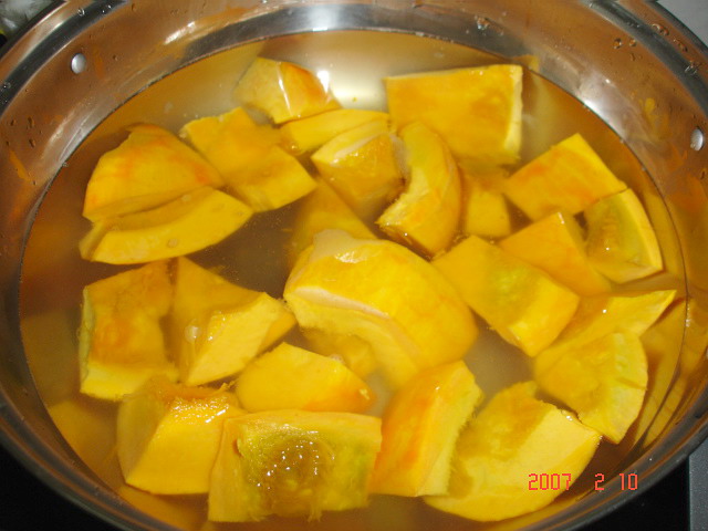 2,这个时候可以准备煮西米啦,嘻。我只买了四毛钱的西米,一次的量,放水煮,水滚后加冷水再煮,再滚后焖十五分钟,取出过一过冷水冷碗备用。<