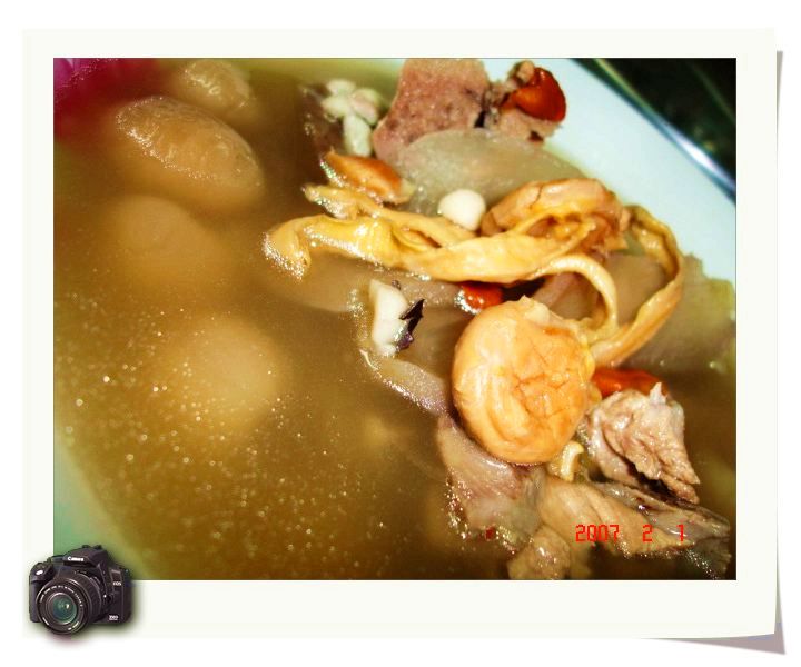 家里还有好些婆婆给我配好的汤料,(婆婆怕我忘了材料的选择与多寡,就帮我配好一份一份),有妈妈带来的酸菜,做为一个称职的厨房CEO,在去街市之前,基本就在心里内定了所需材料。 一,不知名老火汤 不晓得是什么汤料,我买了点猪展肉,一点骨头,一块煲了三个小时,我是待水滚后才放入材料,然后中火滚一个小时,再用小火煲二个小时,这是我自己想当然的煲法,比较入味,最后才下的盐,不喜欢放味精或是鸡精一类的东西,破坏食物本身的鲜甜。先生喝得直竖大拇指。。。
