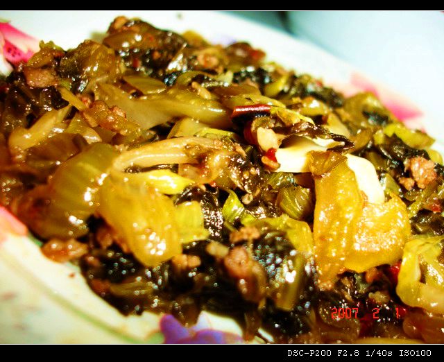 四,超级好味爱心酸菜炒肉沫 姐夫说,外面买的酸菜吃着不安全,他不要吃,妈妈就发挥伟大的母爱,自制了一大堆的酸菜,最近二小姐爱上煮菜,所以今天来找二小姐喝茶顺便送上爱心酸菜一棵~~ 加了糖,蚝油,小辣椒,炒。。。 超级好送饭,不舍得吃完,先生说明天早上煮个公仔面,送酸菜。。。。。