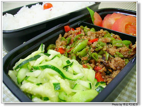 • 爱心盒饭76:碎肉炒空心菜杆+炒小南瓜+凉拌西红柿