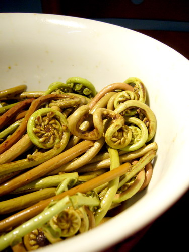 香煎小馒头:超市买的馒头蒸熟放凉,锅里放少许油小火煎到两面金黄即可。酸辣牛百叶:牛百叶在沸水里烫熟,锅里爆香姜片、青红辣椒,下牛百叶,加料酒、酱油、醋,煮3分钟即可。蕨菜:在帽峰山上,一块钱一把的蕨菜,说是可以凉拌,不过试了味道有点苦,倒掉了,没敢吃。