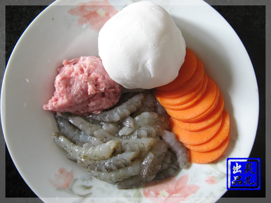 所需材料: 澄面:70克 生粉(薯粉):30克 滚开水:100毫升 鲜虾仁:2两 肉碎:1两 胡萝卜片:适量,大约15片 胡萝卜碎:适量(装饰用)