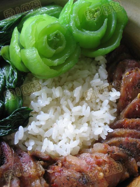 5)最后要做的就是摆盘了,自由发挥吧,腊肠上黑胡椒粉味道不一般的好.浸泡过的大米松软,饱吸了腊肠的盐分还有香味,一顿Breaklunch搞掂了^_^