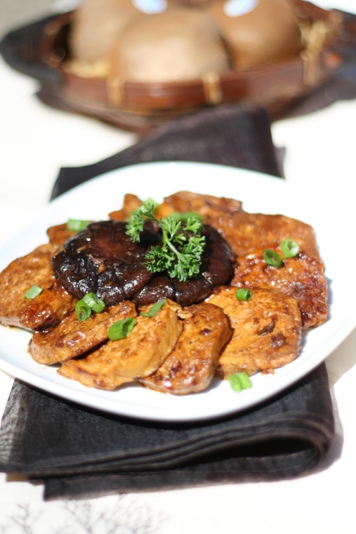 汤,给灰心的孩子一句鼓励,给同事一句热情地赞扬,给邻居一个温馨的问候,给路人一个甜美的微笑, 给那些饥饿的孩子一碗饭,给山区的孩子一个书包......。佛法不在西天、不在书本上,佛法就在你身边。 1.红烧素鸡(强烈推荐,非常好吃) 什么是素鸡:将豆腐皮一层层的卷起来,用纱布和绳子捆好,蒸20分钟就成为素鸡。 做法:素鸡用油煎至两面金黄,然后将葱姜蒜炒香,放入切好的素鸡和香菇,炒1分钟。加半杯水炖6分钟,放入生抽、老抽、糖炖5分钟,勾芡即可。 ![]() 材料 <