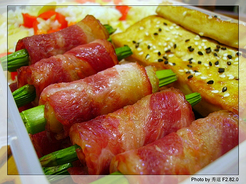 4a9f8b0902000muy.jpg 蚝油家常豆腐:这算是超级费时间的一道菜,饭煮起以后,就赶紧把豆腐切成片,然后放在平底锅里煎,煎的时候就可以做其它事了,比如卷芦笋,然后时不时的给豆腐翻一面,换着煎。煎好之后,用