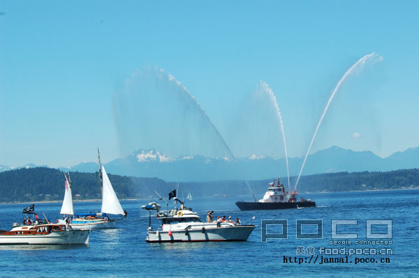 两个小海盗在练武 ![]() 小小小海盗 ![]() 来看海盗的海盗船,还有来助兴的西雅图海上消防船作喷水表演 (后记:每年的7月,Seattle都有叫seafair 的活动,活动维持1-2个月,每个周末有不同的社团主织一些活动,丰富大众生活。图片是去年
