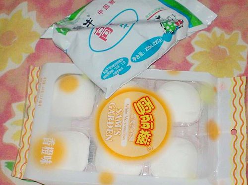 材料很简单:奶一袋 棉花糖一包(我的棉花糖是桔子味的< >所以作出的奶酪是桔子味的--费话)