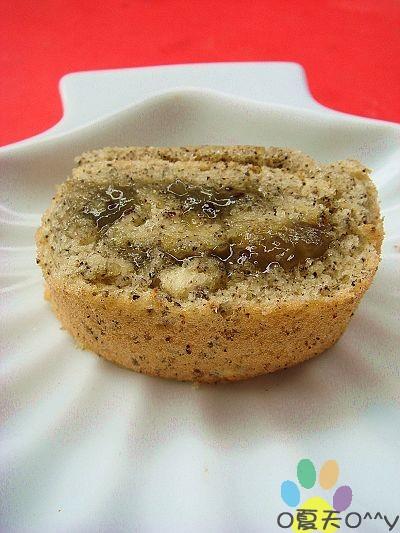 酸酸的奇异果酱加上黑芝麻蛋糕的香气,味道也是不错啊。。