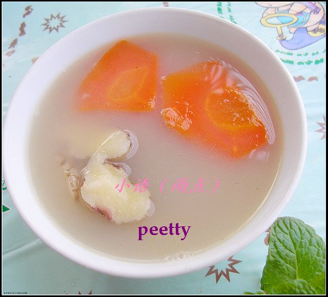 材料:红萝卜、玉竹头、鲫鱼、姜片、蜜枣 做法:1。姜片起锅,把鲫鱼先煎到金黄。 2。红萝卜去皮切块、玉竹头洗净。 3。把适量的水煮开,先把红萝卜、玉竹头、蜜枣放下去,等重新煮开时再把鲫鱼放下去,