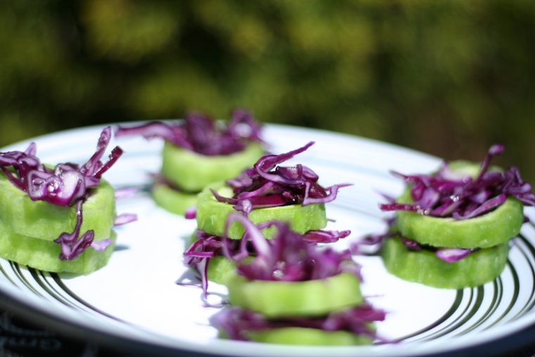 ![]() 2.拌苦瓜紫卷心菜 做法:苦瓜切段去瓤,开水烫一下,放入冷水中,捞出放盐糖拌匀.卷心菜切丝放入盐糖香油拌匀.将卷心菜放入苦瓜中即可. ![]() 成品1 页码:[1] [2] [3] [4] [5] 第4页、共5页