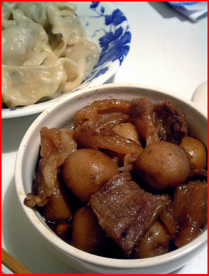 1.jpg 牛蹄筋烧小土豆,我现在发现,新鲜的食物总是很好吃的,废话一句,新下来的小土豆,和牛肉一起炖几个小时,不好吃我就不信了。后边是我家秘制饺子,也是好吃之极,我们俱乐部的老太太吃了以后念念不忘,跟我100日元一只,预定了50个,这生意要做起来,发了!