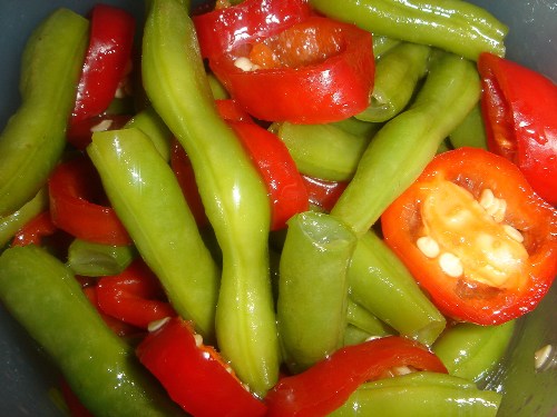 =4>3、将红辣椒、豆角和调料一起拌匀即可。