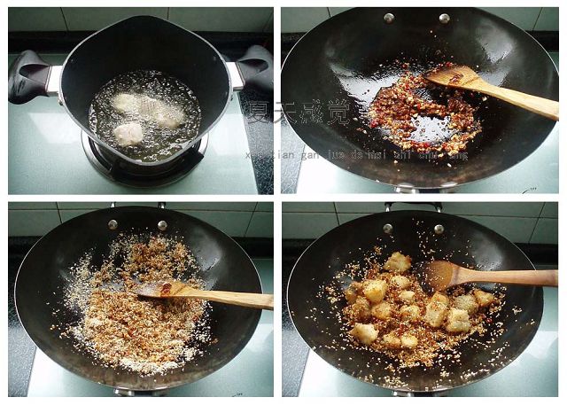 4 加炸过的鳕鱼,鸡粉翻炒一分钟即可出锅