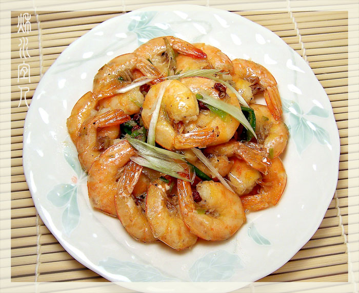 买来的虾极小,去了头,用葱姜丝炒了,卖相也还不错。