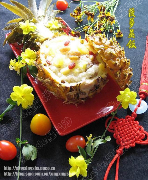 恩~~ 用菠萝做过冷菜, 在來个主食, 献上道云南菠萝饭. 菠萝本生酸甜, 和糯米去蒸,糯米吸收了菠萝的酸甜,吃起來香甜软糯、 做法也很简单,在这菠萝上市季节,大家不妨一试,