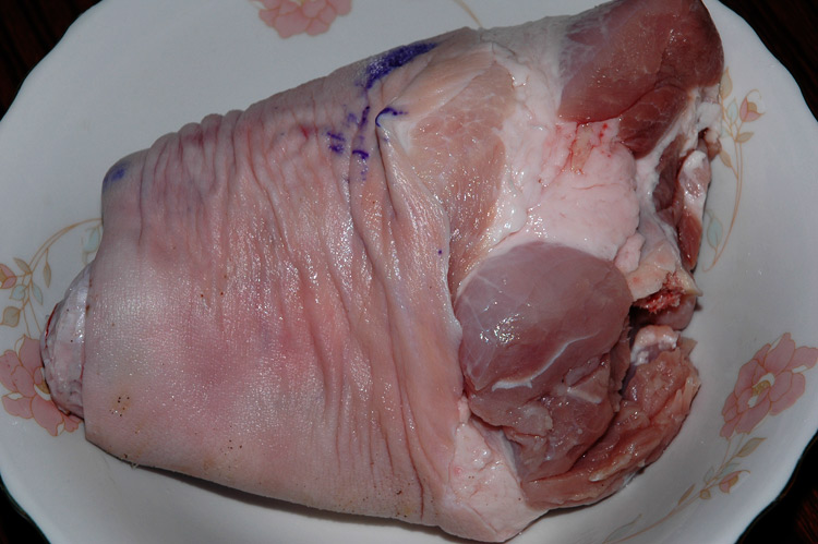 终于该轮到冰箱里的肘子上场了。不知肘子还能怎么做,就知东坡肘子!先来看看东坡肘子的由来。 东坡肘子其实并非苏东坡之功,而是其妻子王弗的妙作。一次,王弗在炖肘子时因一时疏忽,肘子焦黄粘锅,她连忙加各种配料再细细烹煮,以掩饰焦味。不料这么一来微黄的肘子味道出乎意料的好,顿时乐坏了东坡。苏东坡向有美食家之名,不仅自己反复炮制,还向亲友大力推广,于是,东坡肘子也就得以传世。 原材料:肘子一只、葱、姜、蒜、冰糖、桂皮、香叶、八角、五香粉若干。