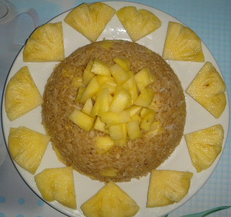 特意为J所做的菠萝炒饭!虽然自我感觉一般,不过小J的评价还是一如既往的高。