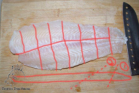 白菜洗净切碎。红薯粉丝热水泡软。龙鲡鱼化开后要片成鱼片,按图示分割。一定要从尾到头,斜刀片。鱼肉不易碎,也不会太厚。鱼页码:[1] [2] [3] [4] 第3页、共4页