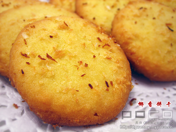 牛奶: 15ml 奶油:30ml 奶粉:15g 低筋面粉:180g 杏仁粉:60g 椰丝:30g < 做法>: 1、将室温软化的黄油在大盆里打发,分次加入糖粉、盐,继续打至糖溶解。 2、分次加入蛋液、牛奶、奶油,搅拌均匀。 3、面粉、奶粉、杏仁粉过筛后,一点点加入,拌匀。 4、再筛入部分椰丝,拌匀。 5、烤盘铺上油纸,把饼干定型,表面撒上椰丝。 6、放入预热150度烤箱,大概烤15分钟,具体还需看情况而定。