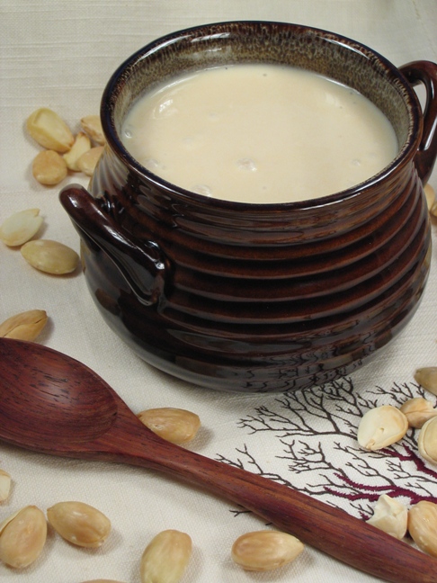 圆葱很下饭。 杏仁粥: 这个杏仁粥是太极学生马太太送的,来自于红楼梦的食谱,做法如下: 杏仁用温水泡30分钟,去皮350华氏烤5分钟后搅拌成粉末,放入开水中煮5分钟,可放少许冰糖。