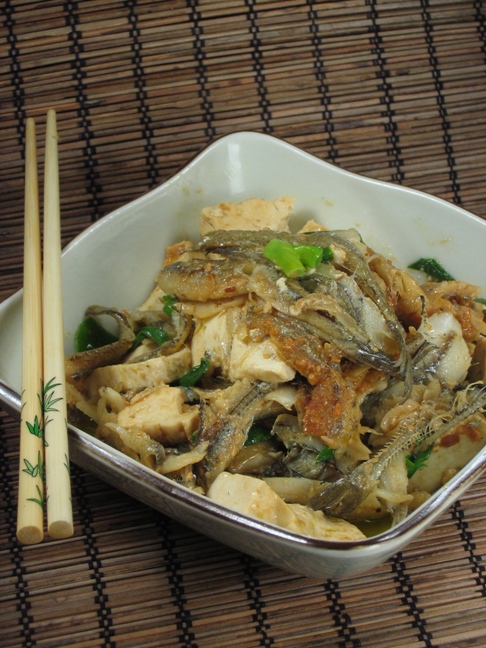 小鱼炖豆腐 做法:小鱼用油煎至两面金黄,放入大酱豆腐炖10分钟,加入葱段即可。 ![]() 成品 ![]() 小鱼连着骨头一起吃,好吃又补钙。 炒秋葵 做法:圆葱炒香放入切好的秋葵和胡罗卜炒1分钟,小火闷5分钟,加盐糖即可