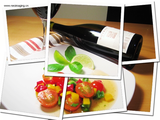 我们家狗狗特别喜欢这道墨西哥色拉,酸酸甜甜的,好吃又开胃。今天我下班回来有吵着我做一份,作为明天她的便当,没办法!虽然我自己是食肉动物,但是偶尔也得补充一下维他命.原料也很简单,樱桃番茄,彩椒,一点盐,蜂蜜,鲜柠檬,九层塔叶,黑胡椒粒。