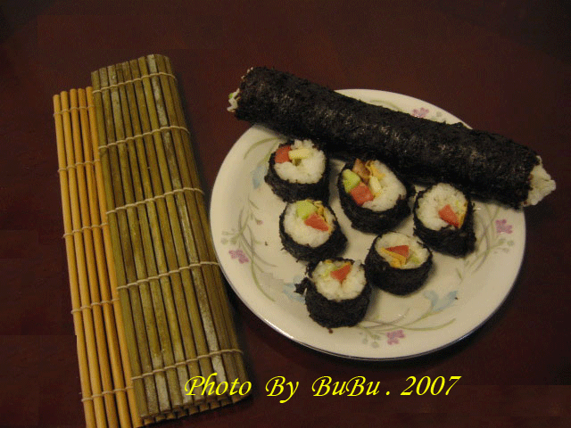 在买了多次寿司外买后,终于决定自己动手做,居然很成功(除了外形不甚美观)。^_^