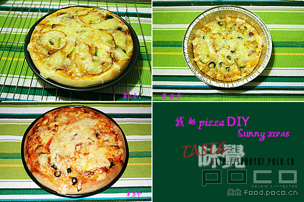 1 酵母和糖混合,加4大匙温水拌匀,待用 2 高粉和盐混合,把油、酵母水和剩下的水倒到那个洞里,混合成团后揉到有弹性表面较光滑就好 3 面团盖保鲜膜放在温暖处发酵半小时 4 这时候可以准备PIZZA面的东西,这个就随各人喜欢啦!烤箱预热到200度 5 面团发好后再揉1,2分钟,摊在PIZZA盘里,厚度要尽量平均,不要厚过0.6公分,烤的时候还会发一点的