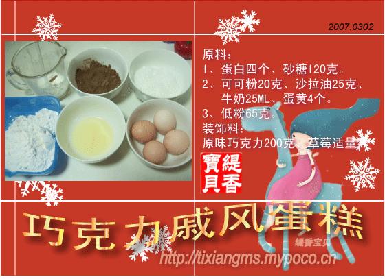 又是好久没有做蛋糕了,家里还有一大堆做糕点的材料米有用哩。可可粉有好大一包哎,那就做可可的东西来消耗一点吧。 败了本新的糕点书,里面的配方都没有试过,就找了个做巧克力戚风的来做一下感受一下。 感觉做出来后还不错,不过书上烤的温度不对,烤出来还是稀的,偶就调高了温度,回炉了一下,不过蛋糕表面就不太好看了,就做了层巧克力的外壳装饰一下。 家里刚好有新鲜的草莓,也正好用上。 不过做好的蛋糕不太好切咯,虽然用的是带锯齿的刀,切起来还是挺费力的,不容易切出这比较完整的一块来拍照呢。