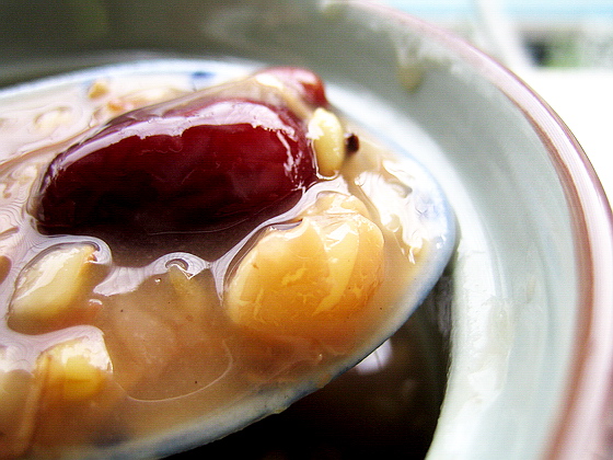 天气又转冷了,好久没有下厨房露一下了,整个冬天都在寒冷中.忽然想起那天和妈妈去家乐福,还剩些材料,可以给2老做点绵软的糖水调整下肠胃.毕竟上个月油水对胃的折磨很是厉害.下边就是这一款甜心粥的做发,很简单,主要是火候,材料可根据个人喜好添加,但姜就要几片就好,条糖也不要加太多,我做的时候故意把小燕麦放多点,因为出来的感觉燕麦在牙中会很Q.而且有小米等杂粮,对身体有好处! <