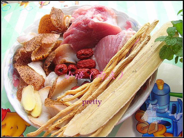 3。放适量的水煮开,再把所有的材料放下去煲2小时左右,再放适量的盐。