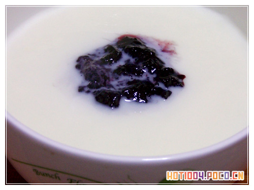 拍不清楚?> <我不是广东人,唯一去过广州的那次朋友带我去吃过双皮奶.后来在上海有时会到港式餐厅,但都没广州那次的好吃.看到很多人做的帖子,我也试着做做看.正好有日本朋友送的蓝梅酱,就放了点进去.感觉不太象,虽然勉强做到了'双皮',汗吃口尚可...可能用的牛乃有关系..光明的低乳糖牛奶因为我有点乳糖不