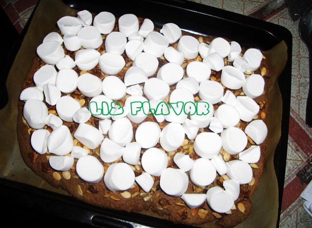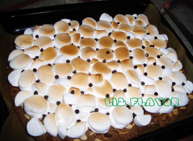 拿出来,铺上棉花糖烤2分钟~(后来觉得不够,又加了点~)