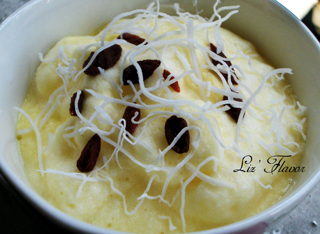 倒入模型,洒上椰丝,又突发奇想加了点枸杞,结果……