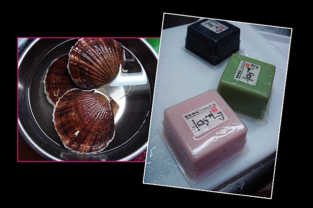 现在正是贝壳类海鲜的汛期,和多品种的贝壳类海鲜上市,所以我这几天也经常买了做来吃,今天买了三只扇贝,反正数量很少所以就用好一点有特色的豆腐来做。这三块小小的豆腐都是特制的:粉红色为紫苏叶口味,绿色是绿茶口味,黑色是黑芝麻口味。口感非常的浓厚馥郁,配上带子的鲜美,真的是清新的搭配。做法:1.扇贝养清泥沙,剖开,去掉内脏,将带子洗净后用刀切出网纹,豆腐切成1.5公分左右的厚片。2.在扇贝壳里分别码上豆腐和带子,勇猛火蒸2分钟左右,撒上葱,姜,红辣椒丝,浇上热油,然后浇上用酱油,胡椒粉,鱼露调成的味汁,装饰上香菜即可1