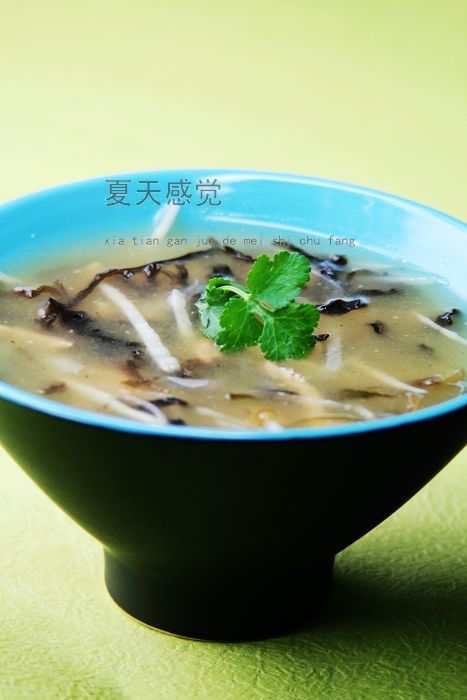 今天的汤做起来很简单,也好喝,酸辣口的,汤里的材料可以有所变化,只是要注意切的时候尽量切的细一些,这样做出来的汤不但好看,而且口感也好哦~~我搭配的有肉丝,白萝卜丝,笋丝,黑木耳丝,海带丝!如果不喜欢,可以换成爱吃的切成丝就行哦~~ 原料: 瘦肉 50克 白萝卜 50克 笋 50克 海带 50克 黑木耳 50克 高汤(没有可以加水)
