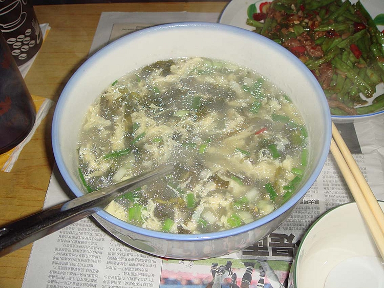 紫菜蛋花汤,嘻嘻,放了蛋,汤有点混混的颜色哟。