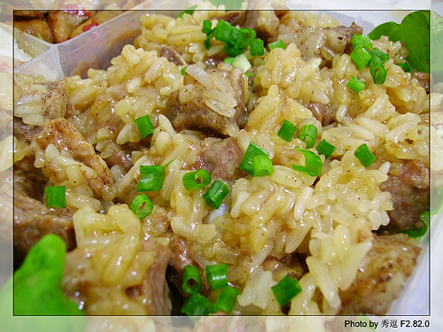 爱心盒饭54:糯米蒸排骨+豆瓣口蘑+香肠焖米饭