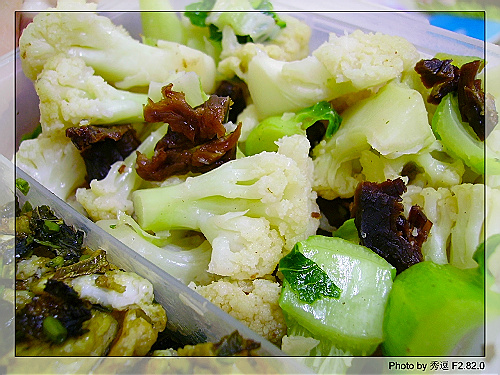 爱心盒饭52:北京烤鸭+腊肉炒花菜+香椿炒蛋