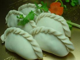 〔用料〕云吞皮10张。 馅料:椰菜茸1汤匙,白菌茸、甘笋茸、冬菇茸各一茶匙。 调味料:盐、糖、素味粉各1/5茶匙,生粉1/2茶匙,姜汁1/4茶匙 , 麻油、胡椒粉各少许。 〔做法〕馅料与调味料拌匀,以云吞皮包成饺子形状,沾上封口即成。