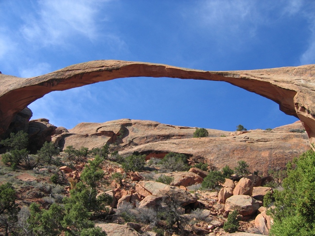 最大的拱门 墨西哥早餐 美国西南之旅---2.拱门国家公园(Arches National Park) 拱门国家公园位于美国犹他州东南部,距盐湖城(Salt Lake City)约234 英哩,公园中怪石及奇特地形林立,身历其境时不禁感叹上天开天辟地之神奇,鬼斧神工之奥妙。 公园中有 2,000多个各种奇形怪状的拱门(arches),这还不包括其他奇特的地形结构、石林及